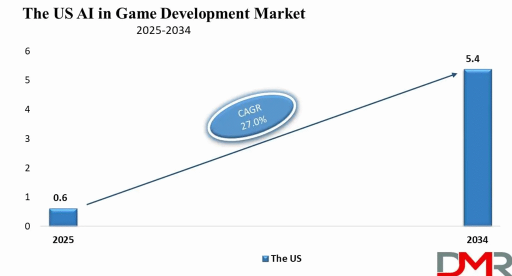 在市場規模面,根據DMR的報告中顯示出,美國在「AI在遊戲開發」市場預計在2025年達到6億美元,預計至2034年將增長到54億美元,複合年增率高達27 %。能看出北美對此的資金投入持續成長、技術底蘊穩固。